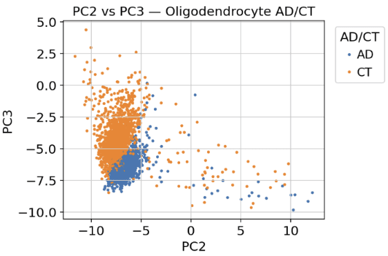By applying marker-gene analysis and statistical tests, the project aimed to generate clear biological insights into how amyloid-β–related pathology is reflected in single-cell transcriptional changes.